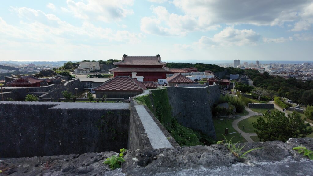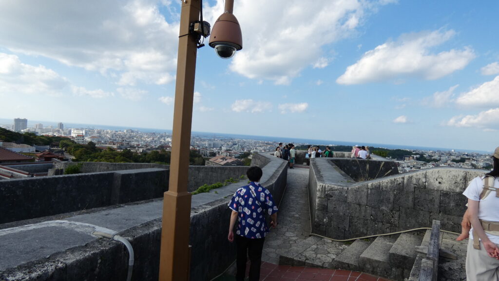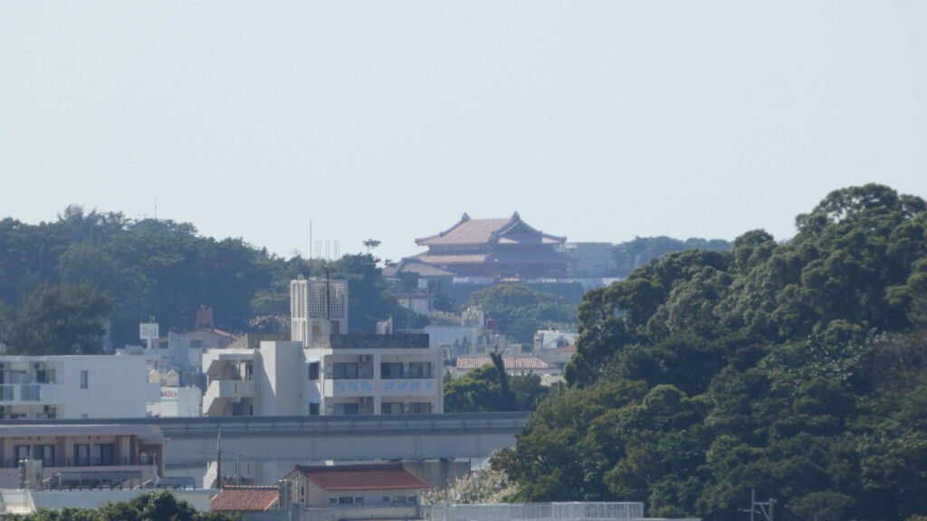 最後は恒例で、東(あがり)のアザナからの景色を楽しみましょう。ところで、尚寧王はその後どうなってしまったというと、薩摩軍との和議は成立しましたが、降伏同然だったので、尚寧王は本土に連行され、大御所・徳川家康、将軍・徳川秀忠に謁見させられたのです。徳川や島津の権力を高めるために使われてしまったのです。尚寧王が、島津の従属下になった王国の首里城に戻ったのは、二年ぶりのことでした。その後は王国の復興に努め、9年後に亡くなったのです。