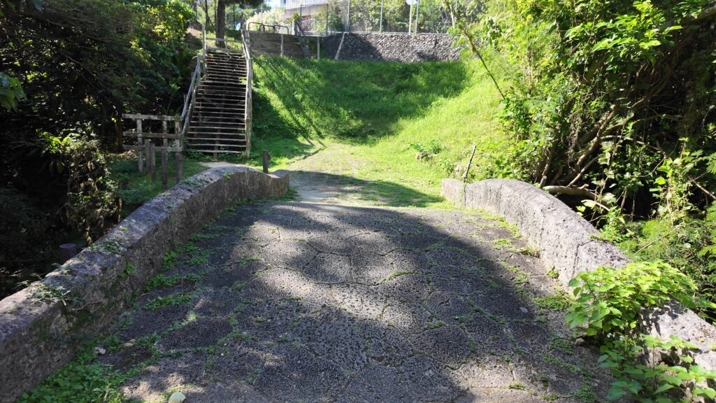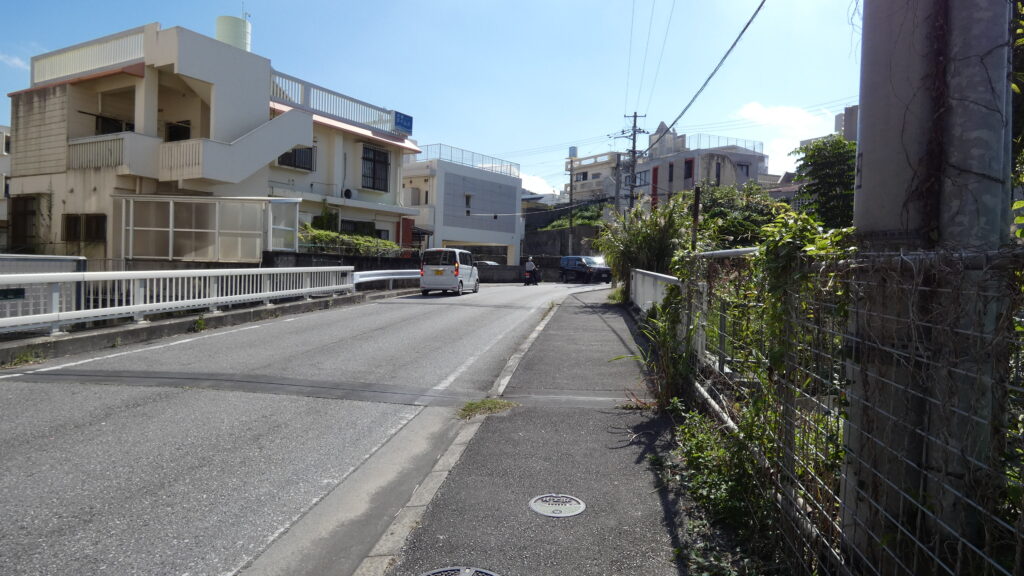 そうするうちに平良交差点に出て、渡ったところが太平橋(たいへいきょう)です。普通の端に見えますが、かつてはこちらも石橋で、薩摩軍侵攻のときには、ここで攻防戦がありました。しかし薩摩軍鉄砲隊の猛攻撃により、王国軍は撤退しました。