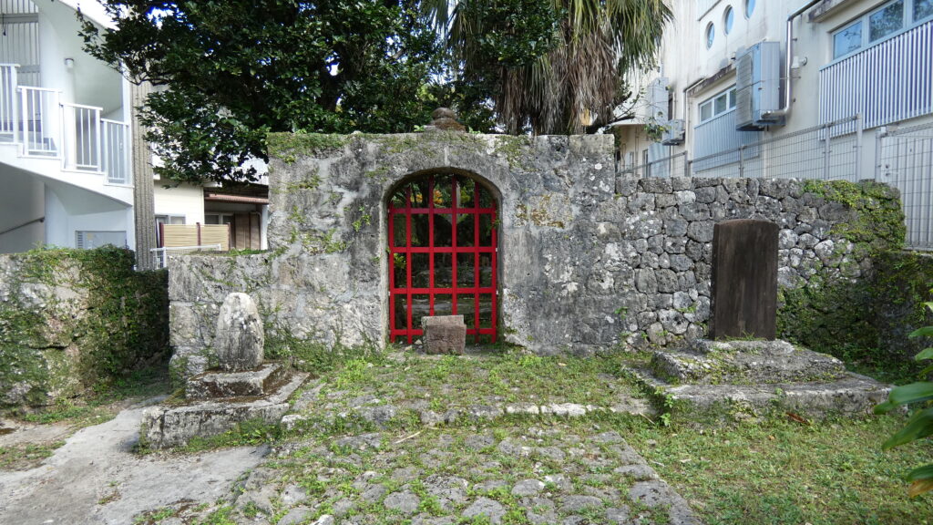 そして龍福寺跡があるのですが、薩摩軍の琉球侵攻のとき、焼かれてしまったそうです。やはりこの道を攻め上がったのでしょう。次は郵便局を過ぎたら左です。
