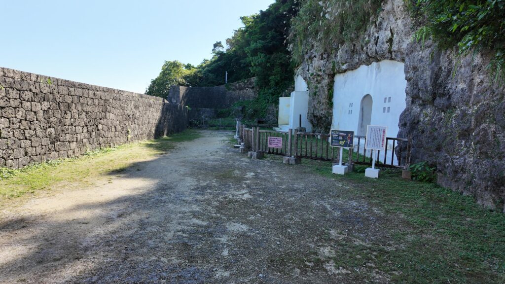 それでは、ようどれの入口の方に登っていきましょう。今回は大丈夫そうです。復習ですが、ここは中山王・英祖が築いたと言われる王陵で、沖縄戦で破壊されましたが、2005年に復元されています。琉球王国の尚寧王もここに眠っています。
