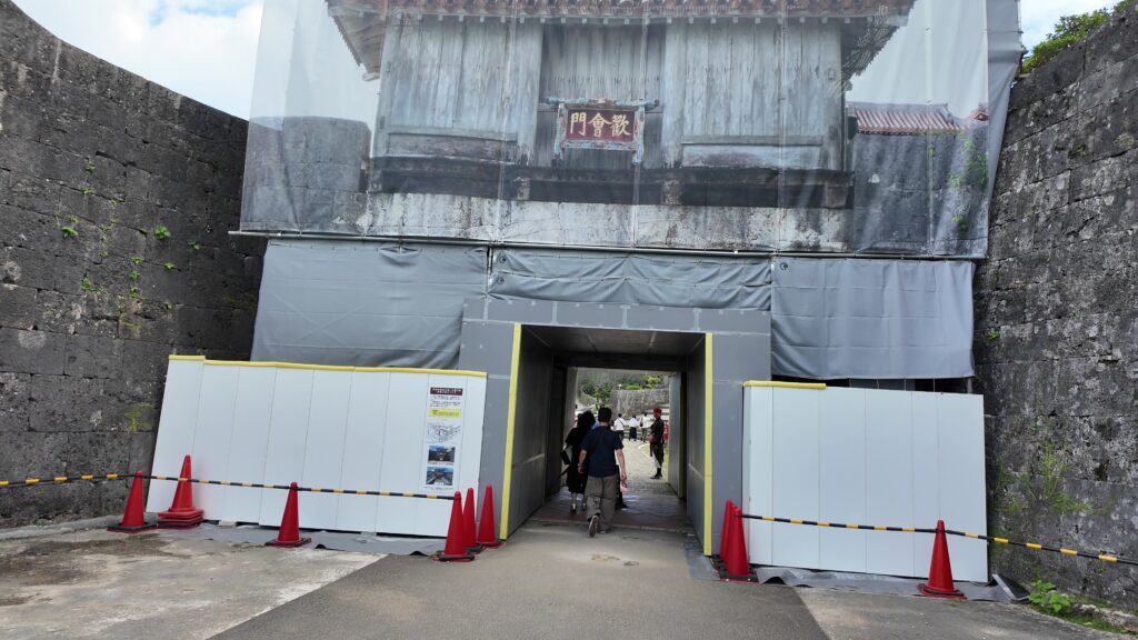 次は歓会門ですが、工事中です。その先からが内郭で、正門の瑞泉門になります。そして、漏刻門、広福門を通れば、奉神門の前に到着です。前回は、ここから工事用の素屋根が見えましたが、中はどうなっているのでしょうか。