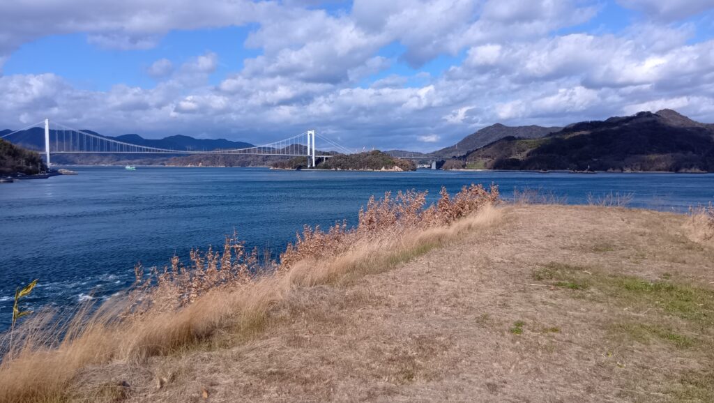 更に、芸予諸島の要所の一つ、来島海峡に行ってみました。ここも素晴らしい景色です。ここにも村上海賊がいて、来島村上氏の本拠地がありました。それが来島城で、城があった島も一緒に眺めることができます。今でも人家があって、その代わり、史跡らしくはないようです。すぐに出動できるところに城があったことだけはわかります。