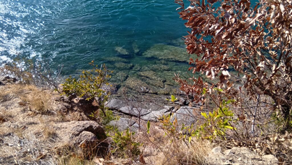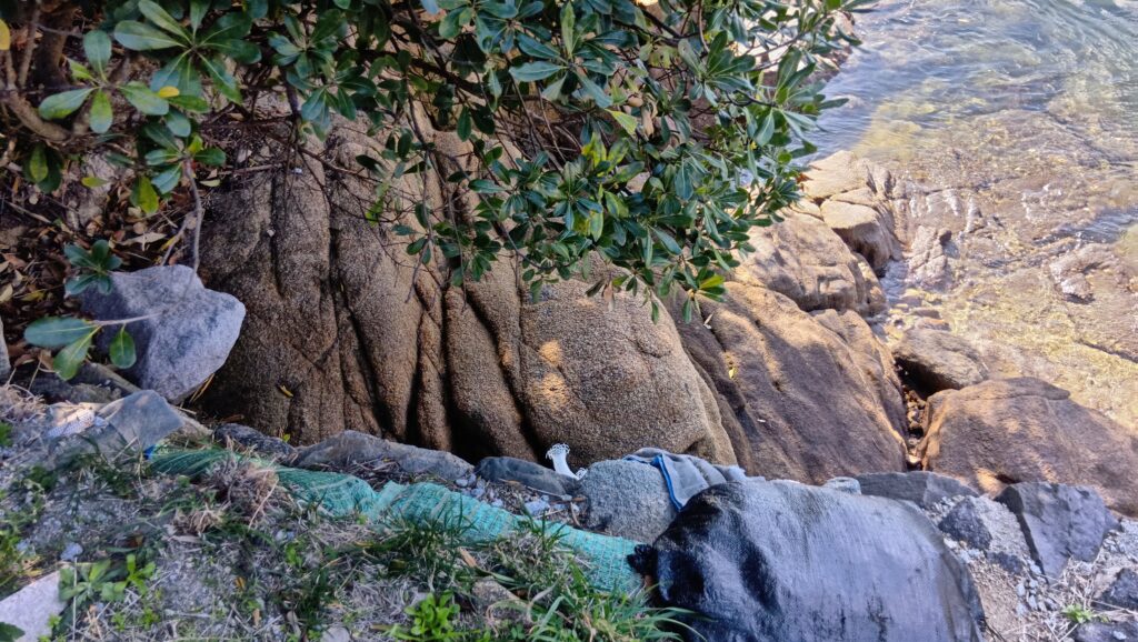 下の方を見ると、岸が人工的に加工されています。武者走りでしょうか、岩礁ピット含め、島を囲んでいるようです。まさに島中が城だったのです。