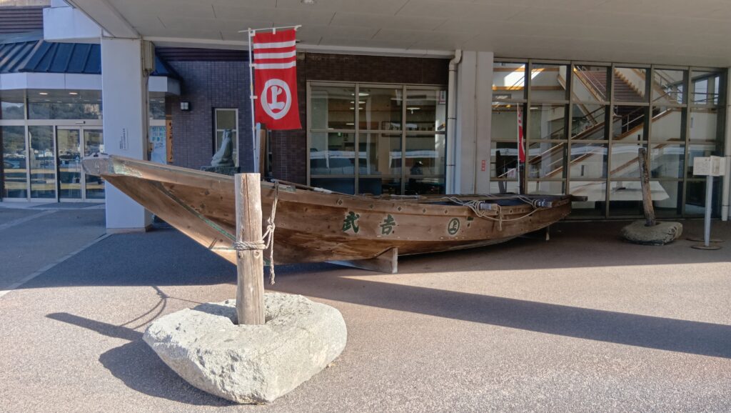 近くにある村上海賊ミュージアムにもきてみました。外に、復元された小早船があります。海賊が使った小型船のことで、なかなかかっこいいです。中の展示も充実しています。例えば、岩礁ピットと武者走りについての展示があって、上陸ツアーと一緒に見ると、とても勉強になります。