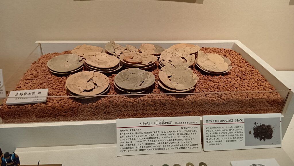 しかし、今のままでも、周りの海峡や島々が一望できます。360度パノラマビューです。本丸からは面白いものが発見されています。大量の「かわらけ」です。かわらけとは、儀式や宴会で使われた、使い捨ての素焼きのお皿です。満天の星の下、海賊たちがここで宴会を楽しんでいたかもしれません。
