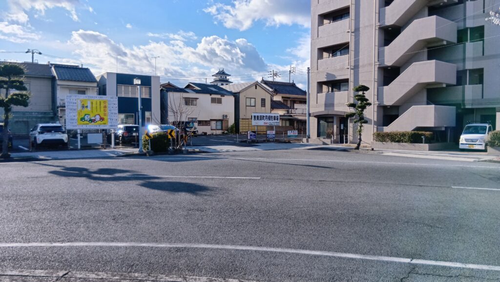 今治港に来ています。港湾都市らしく、立派な建物があります。海城を感じてみたいので、最初に来てみました。船がいるところに移動すると、ヨットなどが並んでいます。実は、ここはもう今治城内だったのです。中堀の船入だったところが、港の一部になっているのです。さすが今治です。しかも、残っている内堀は、こちらから取水しているのです。ここをカギ型で曲がる道路も、城の名残りのような感じです。天守も見えます。