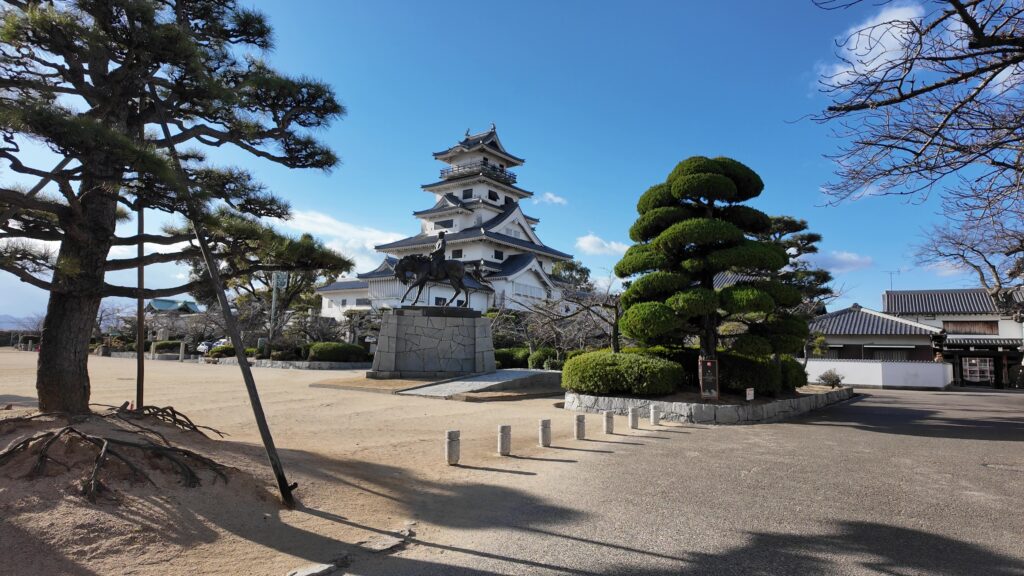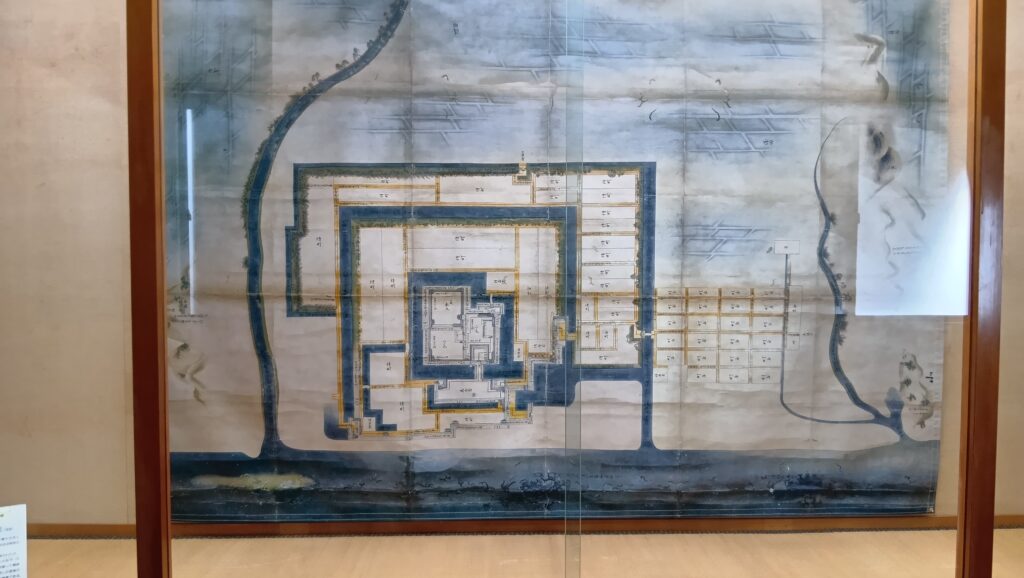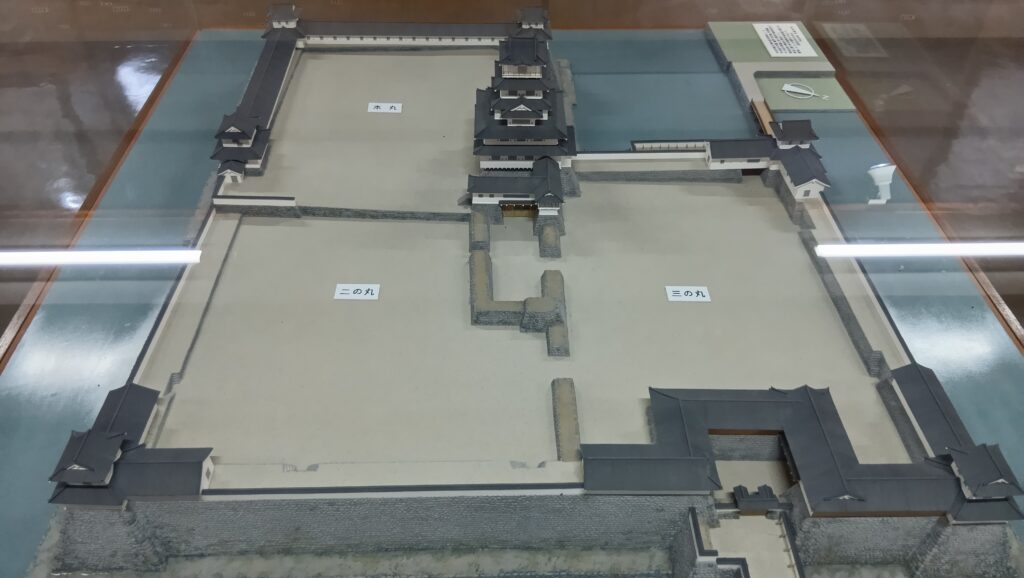 ただ、もともと城の中心部は3つの方形の曲輪を組み合わせたシンプルなもので、天守がなくなってからは、二の丸に御殿があるのが目立つくらいだったようです。3つの曲輪には仕切りがありました。