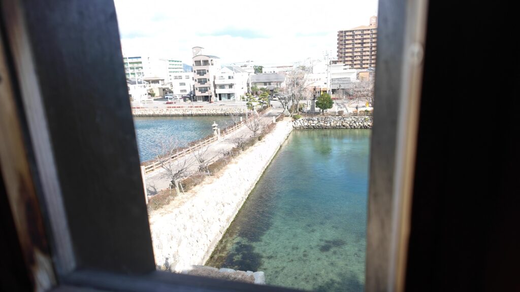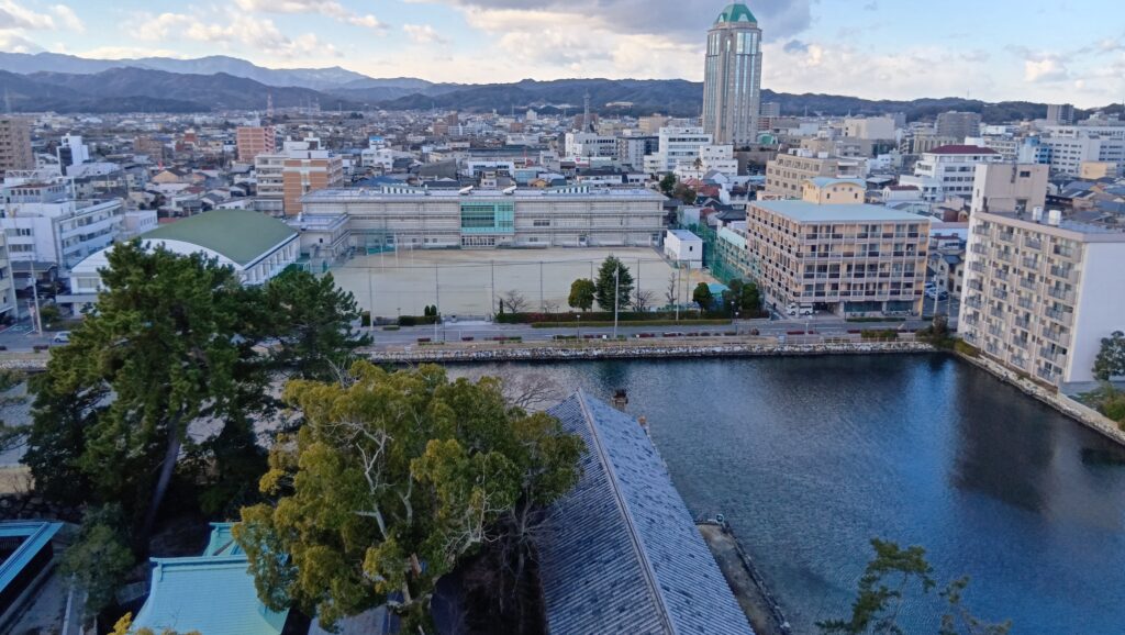 西側の眺めは、主に市街地になります。堀の広さが目立ちます。元あった天守からも、こんな眺めだったのでしょうか。現代の天守も、十分楽しみました。