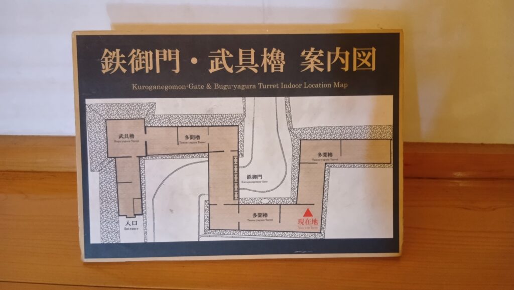 武具櫓から入っていきましょう。中から内堀などが見えたり、鉄御門の模型が展示してあったりします。鉄御門の方に進みましょう。