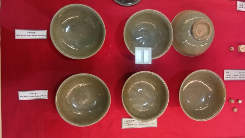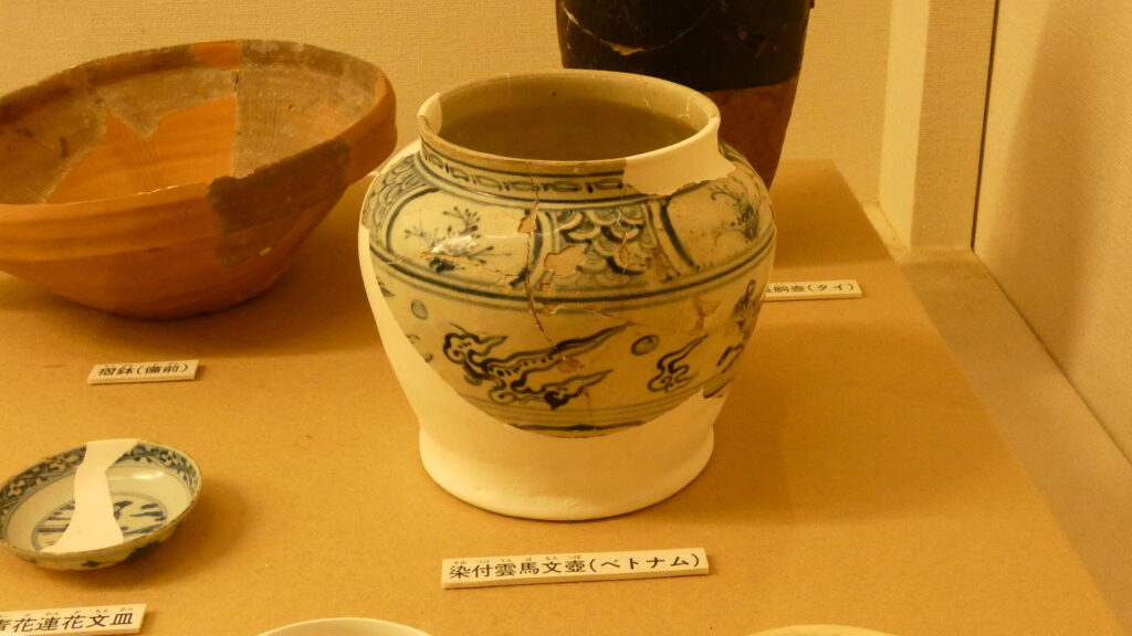発掘調査による時代区分だと第4期に当たります。この時代にも監守の住居と思われる建物がありました。面白いのは、この時代のものとして、ベトナム製・タイ製の陶磁器や、本土の備前焼も出土していることです。