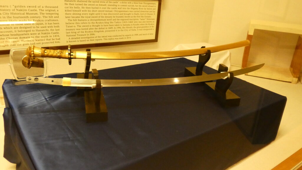 その剣はその後、中山王に献上され、現在国宝になっています。2つのストーリー、いかがだったでしょうか。もちろん定説の重みは感じますが、どちらも沖縄の伝承がもとであれば、古い方が事実を伝えているかもしれないし、異説の方が真に迫っているようにも思えます。皆さんはどうお感じでしょうか。