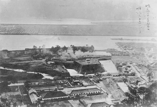 鉄道開通後の三原城跡、三原市ホームページから引用