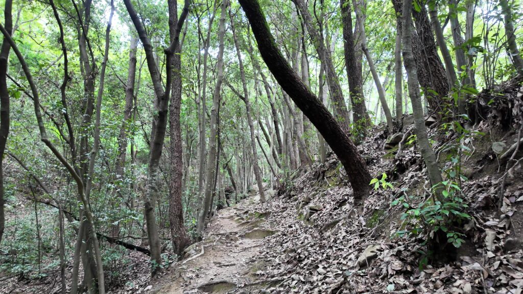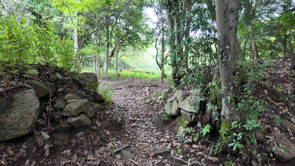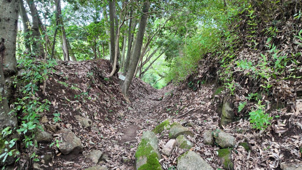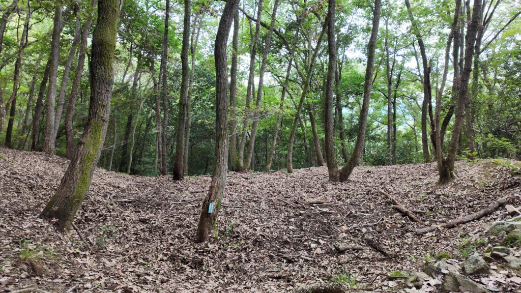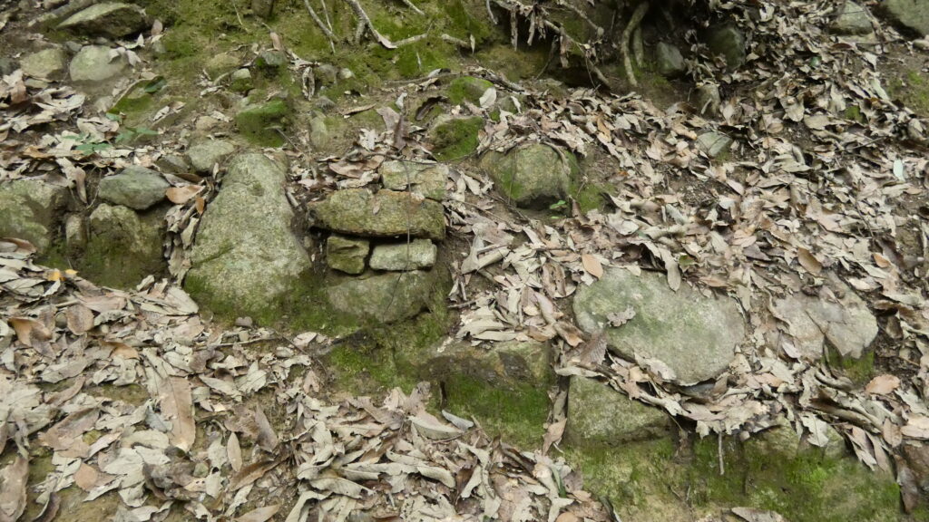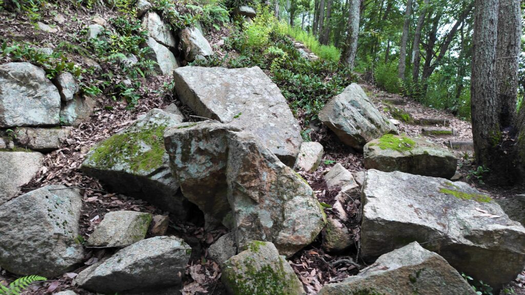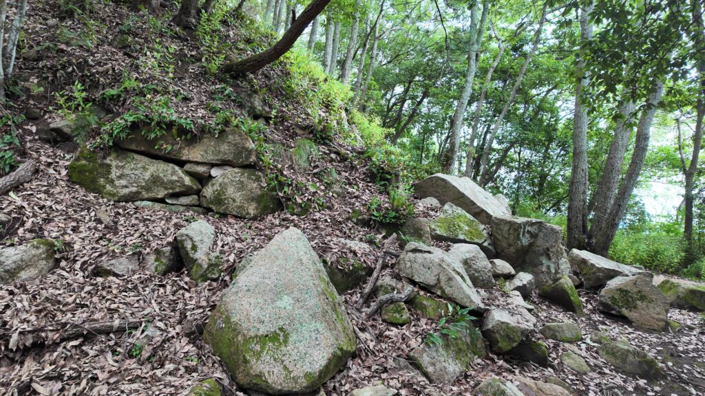 新高山城は山城でしたが、中世とその後の時代の過渡期のような性格を持っていました。中世以来の山城としては、川を背にし、山の地形を利用し、曲輪・空堀・切岸などを組み合わせ、敵の侵入を防ぐようになっていました。また、山頂近くに6つもの大井戸があって、日常生活、更には籠城戦にも耐えられるようになっていました。新しい要素としては、石積み・石垣を多用し、曲輪の補強とともに、城主の権威をも表しました。曲輪の入口も枡形を導入し、防御力を高めていました。重臣の屋敷地も、城下に集めていたことがわかっています。
