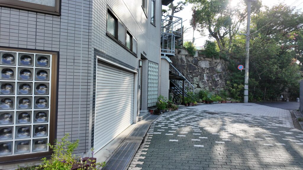 しかし周りと比べると随分高くなっています。しかも昔は周りは海だったのです。櫓があったらしい場所もあります。角地の下が例の岩礁です。ここも島時代から、現代に生き残っているのです。