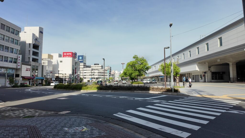 今私たちがいるところは、かつての本丸で、周りもすっかり市街地になっているのですが、ところどころ、海城の痕跡が残っているのです。前半は、そんなスポットを巡ってみましょう。後半は、駅の反対側に残っている天主台に行ってみます。まわりを歩いて、その大きさを実感したり、駅に直結した通路から、天主台の上に登ってみます。これぞ「城の駅」です。さっそく出発しましょう。