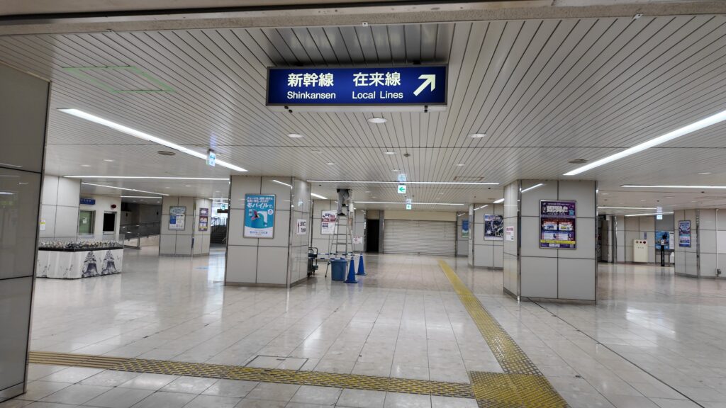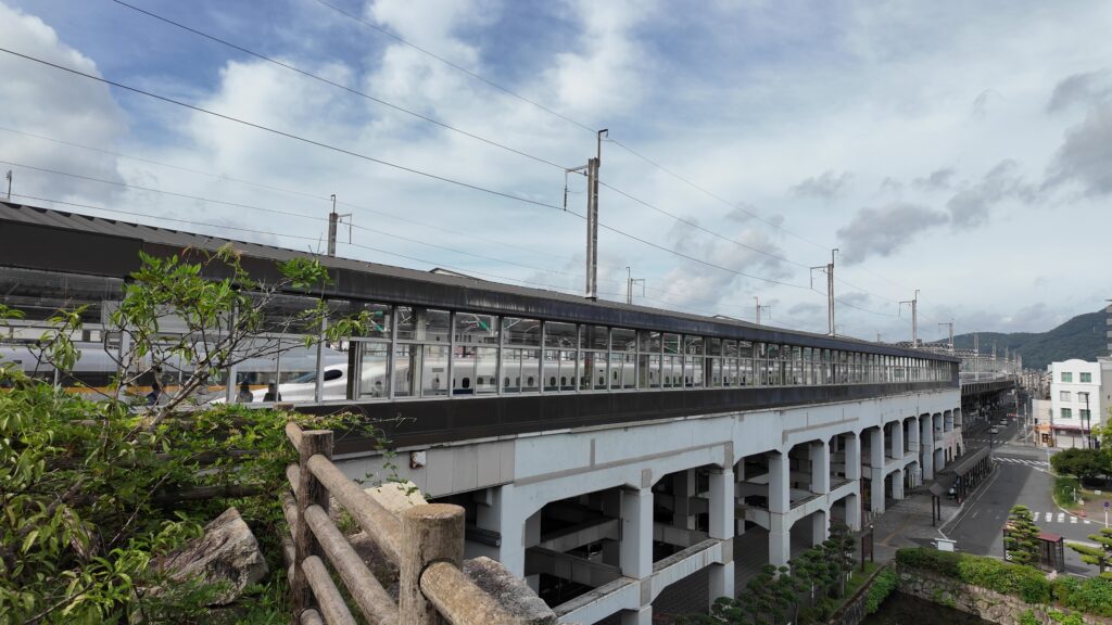 「城の駅」らしさをもっと体感してみたければ、新幹線が通り過ぎたり、発着するのを眺めましょう。