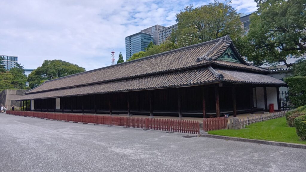 ここからが、もっとすごいです。また番所の建物がありますが。今度のは、ずいぶん大きいです。これは、百人番所で、実際に百人以上の役人が詰めていました。それに、ここにいただけではなく、ここで身支度をして、各所の警備に向かった役人もいたそうです。警備センターみたいなところだったのでしょう。24時間体制で警備をしていて、さすが江戸城、現代のガードマンも顔負けです。