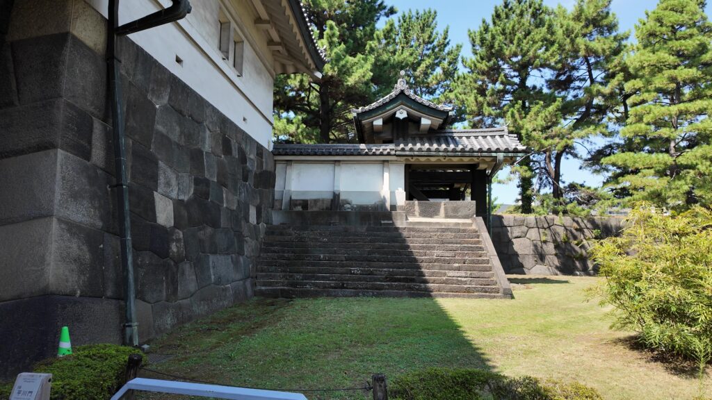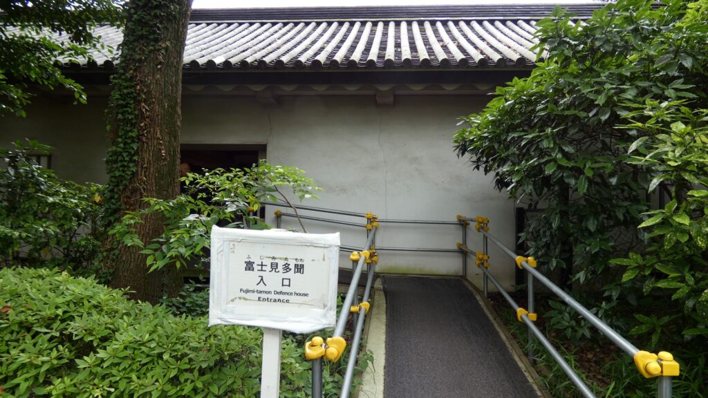その現存建物は、富士見多聞です。本丸の西側を守る櫓の一つで、中に入ることもできます。別名は「御休息所前多聞」といいます。「御休息の間」というのが中奥にありましたので、富士見多聞より少し内側の場所は、黒書院や中奥の辺りのようです。