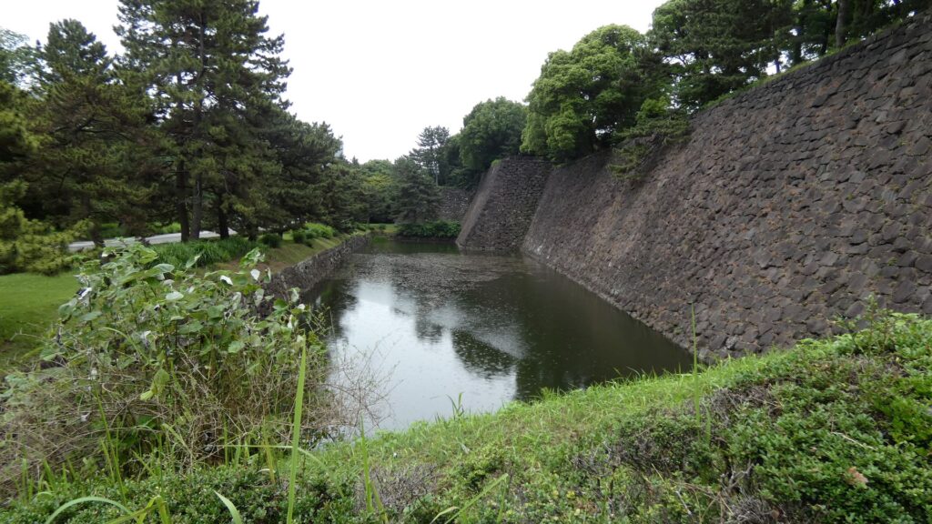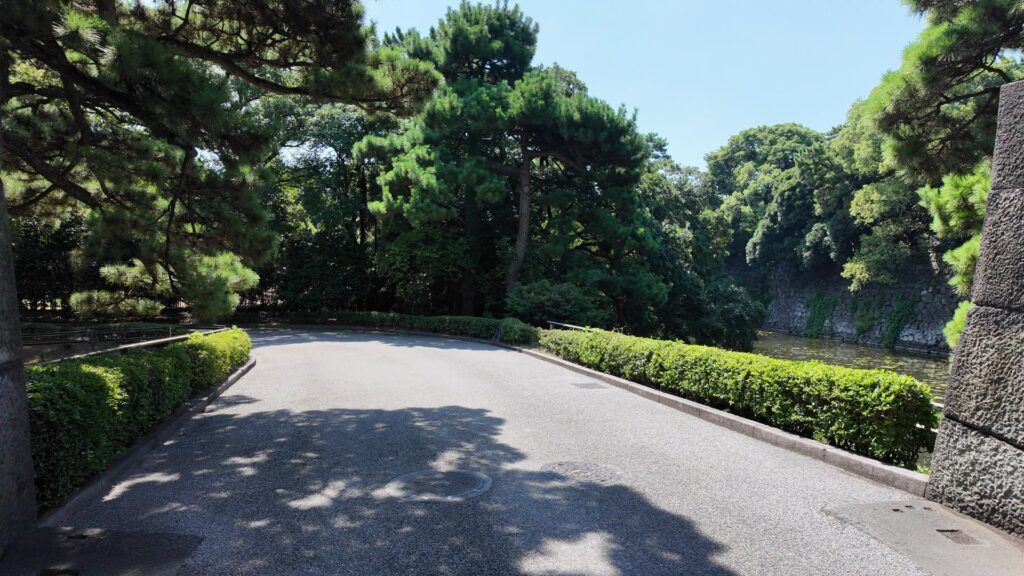 最後は、梅林坂の下に戻って、平川門に向かいます。下梅林坂門跡を通るのですが、堀に挟まれた細長い枡形になっています。枡形を出てからも更に回り込んで、やっと平川門に到着です。この門は残っています。